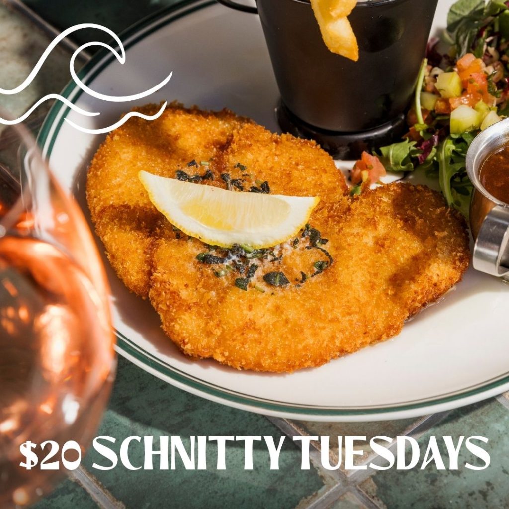 Enjoy a classic Chicken schnitzel for just $20 every Tuesday at The Beach Hotel Broadbeach. Served with chips and a house garden salad, available all day! Add a Classic Parmi topper for only $2